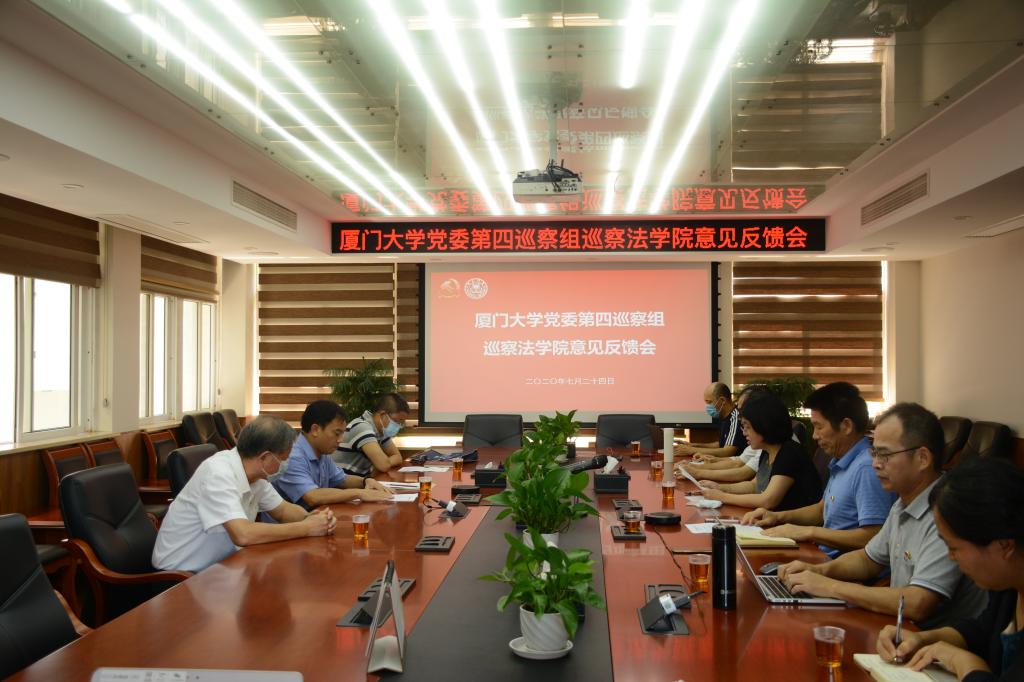 按照校党委统一部署和安排,5月11日至7月9日,校党委第四巡察组对法学院开展巡察工作。巡察组认真贯彻《中共厦门大学委员会巡察工作暂行办法》,以习近平新时代中国特色社会主义思想为镜子,以“四个意识”为标杆、以党章党规党纪为尺子,突出坚持党的领导,聚焦全面从严治党,以“两个维护”为根本政治任务,紧扣“六项纪律”,紧盯“重点人、重点事、重点问题”,聚焦“四个落实”,通过召开领导班子见面会和动员大会,听取工作汇报,开展问卷调查,与教职工个别谈话,列席有关会议,受理信访举报、调阅档案材料,抽查核实情况,走访相关部门单位等方式,开展认真细致、全面客观的巡察,并对巡察中发现的重点问题进行了深入了解,在学院的积极支持配合下,顺利完成了巡察任务。
