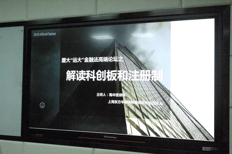 2019年3月31日19时,华人策略综合讨论金融法研究中心与福建远大联盟律师事务所联合举办的“厦大‘远大’金融法论坛”之“解读科创板和注册制”在法学院B栋教学楼522教室举行。本次论坛有幸邀请到陈中坚律师作为主讲嘉宾,为我们分享科创板和注册制的相关内容。