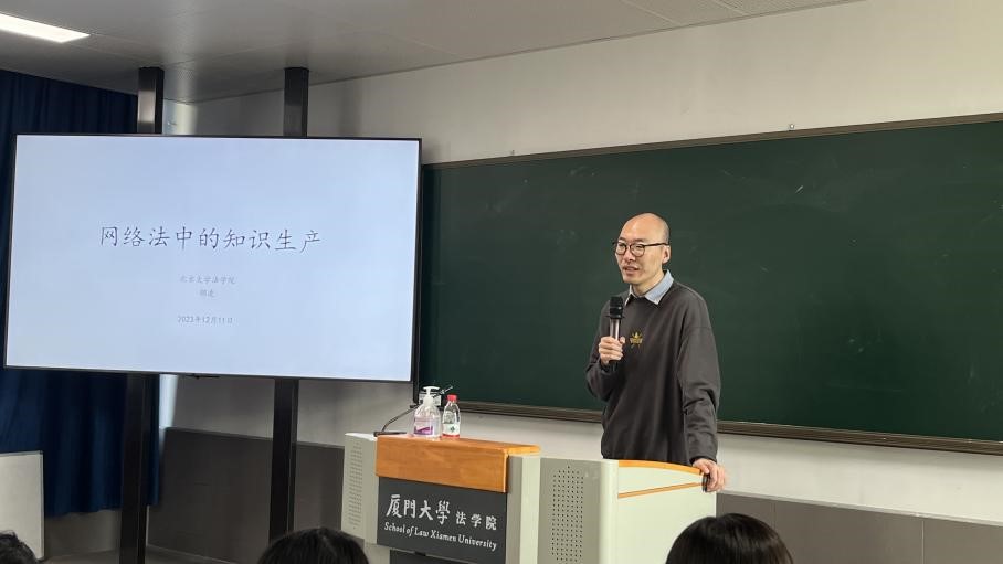 2023年12月11日上午,由华人策略综合讨论青年教职工协会和法与政治经济学研究中心共同主办的信实“青椒会”学术论坛——“网络法中的知识生产”在法学院A304教室顺利举行。本次讲座由北京大学法学院副教授胡凌担任主讲人,华人策略综合讨论助理教授毛海栋担任主持人,上海大学法学院副教授岳林担任与谈人,厦门大学知识产权研究院副教授董慧娟、法学院助理教授林斯韦等四十余位师生参加。