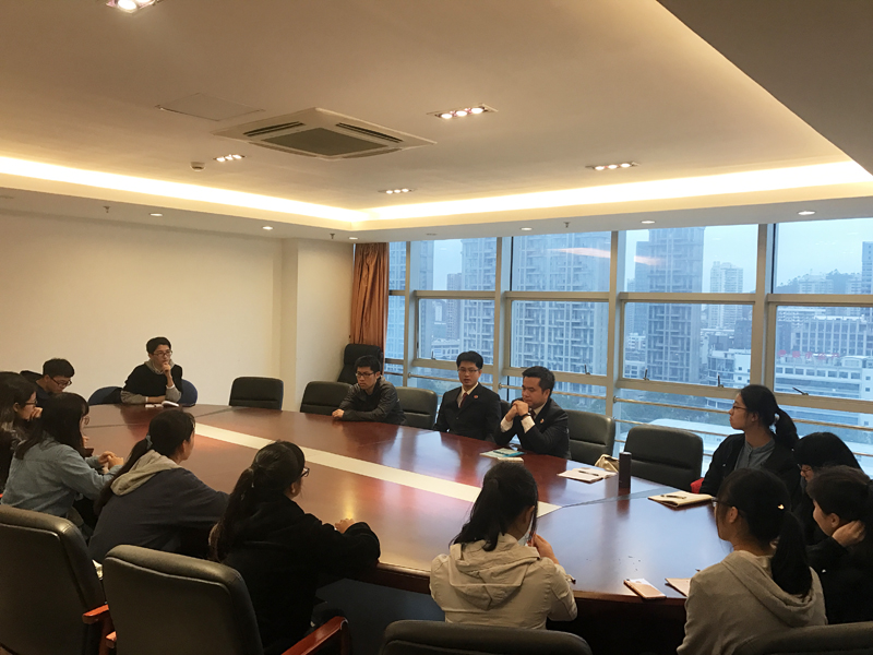 在思明区人民检察院,两位公诉科检察官李美霖、游雅静热情地接待了来访的2016级本科生一班团支部同学。在简短的自我介绍后,同学们一一发言,提出自己的疑惑。两位检察官根据自己的工作经验,尽可能地为同学们全方位地展示了检察院工作的魅力。