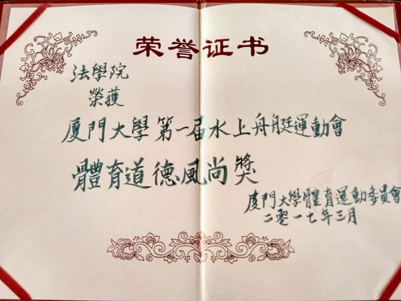 2017年3月26日,厦门大学第一届水上舟艇运动会在厦门大学思明校区思源谷进行。来自全校各学院近400名同学一同在美丽的思源谷,共同创造了一场水上盛会。