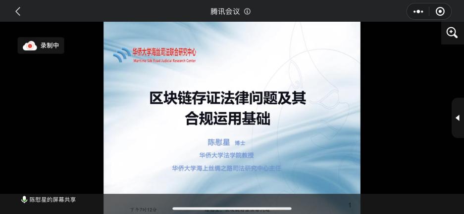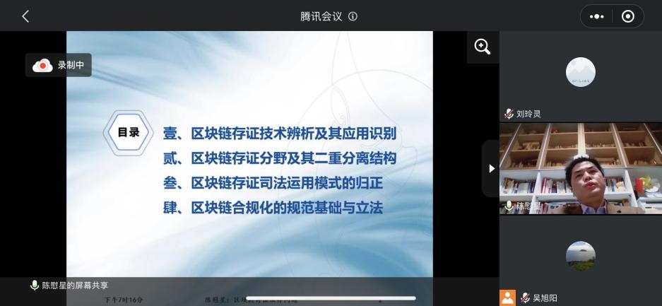 2021年11月25号晚上19:10-21:10,“区块链存证法律问题及其合规运用的基础”(信实论坛)线上讲座成功举行。会议由线下转为线上,让更多朋友们也可以一同学习、分享。华侨大学教授陈慰星为此次讲座主讲人,厦门大学副教授吴旭阳担任此次讲座主持,法学院学生以及律师朋友们近五十人有幸在线上参加了此次讲座。陈慰星教授曾任华侨大学国际学院副院长,现为海上丝绸之路司法研究中心主任,承担了国家级以及省部级和两高的许多课题,学术水平非常出色,此次讲座内容兼具实务性、理论性和前沿性。